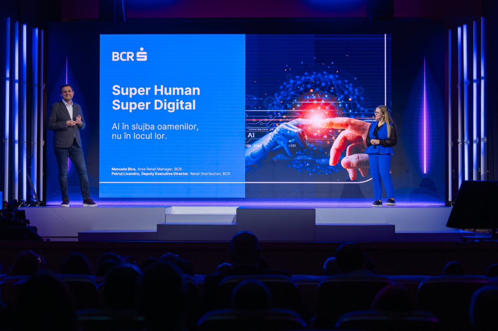Prezentarea susținută de experții BCR pe scena IQ Digital Summit de la Filarmonica din Pitești, pornește de la ideea că am trecut de la digitalizare la inteligență augmentată — o etapă în care tehnologia nu înlocuiește oamenii, ci îi ajută să fie mai buni, mai eficienți și, aparent paradoxal, mai aproape unii de alții.