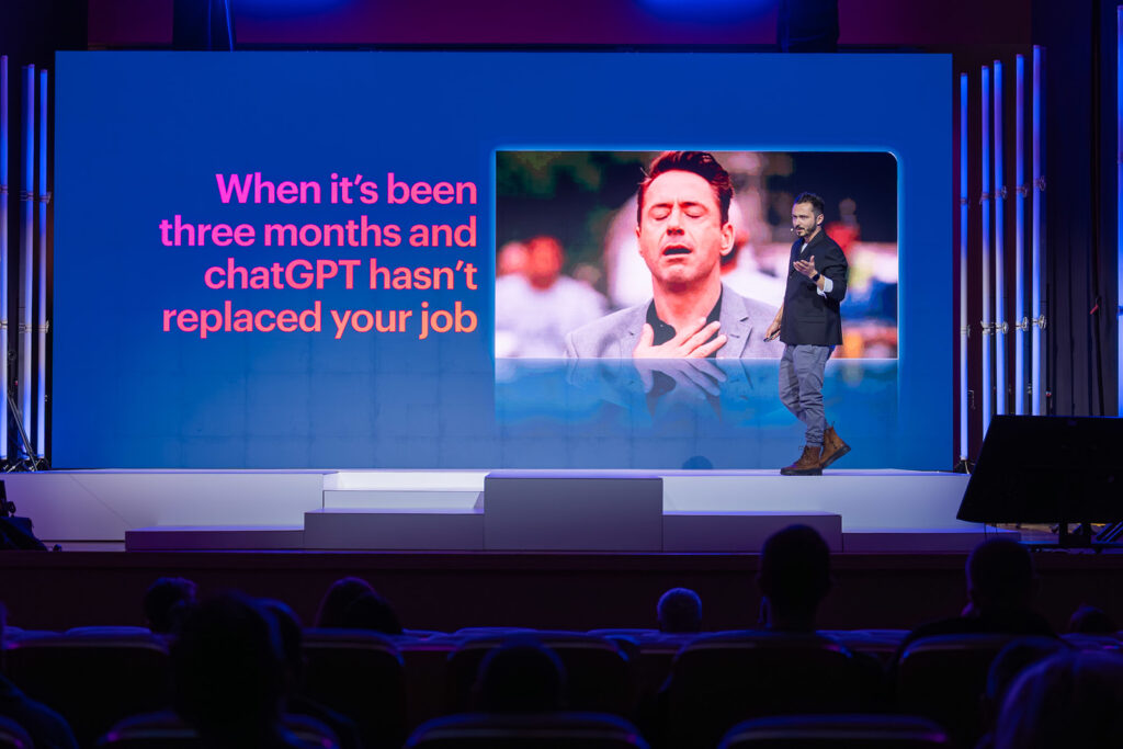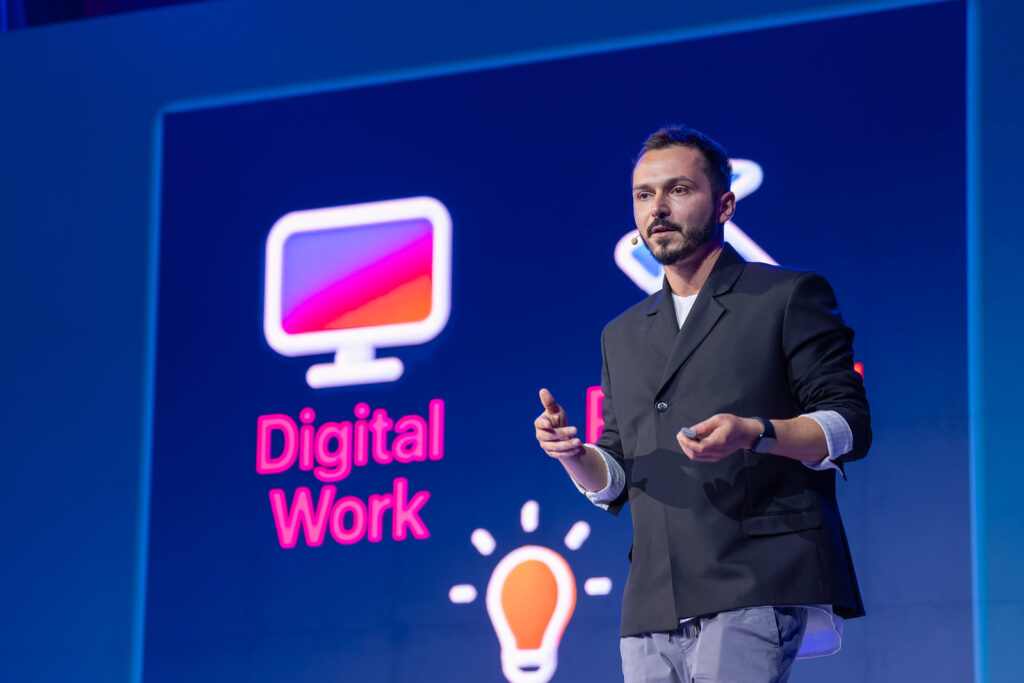 Pe scena de la Pitești, Andi a explicat că lumea vorbește obsesiv despre agenți, dar ignoră partea ce reprezintă motorul automatizării în companii: workflow-urile.